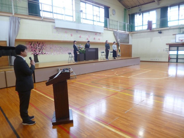 新しく大平小へ3名の先生方が異動し、その先生方を迎える着任式が行われました。代表して、教頭先生にあいさつの言葉をいただきました。「大平小学校は、とてもいい学校だと聞いてきました。」「子どもたちもとてもいいと聞いています。」とうれしい言葉をいただきました。子どもたちもその言葉に自信を持って「はい。」と答えていました。元気いっぱいの小学校だなと新しく大平小学校に来られた先生方に知ってもらうことができました。