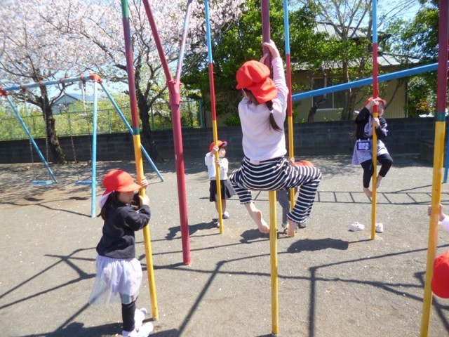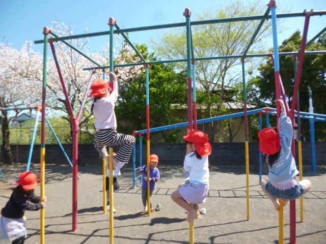 運動場の遊具で・・・(1年生)