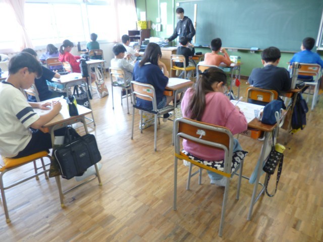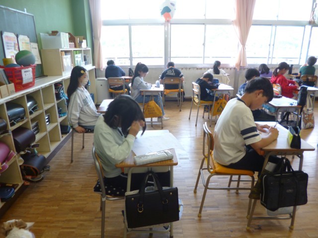 5年生算数の授業の様子です。4年生に学習した内容の確認テストを行いました。みんな真剣に取り組んでいました。簡単な問題もあれば、難しい問題もありました。でも、最後まであきらめずに考えていました。