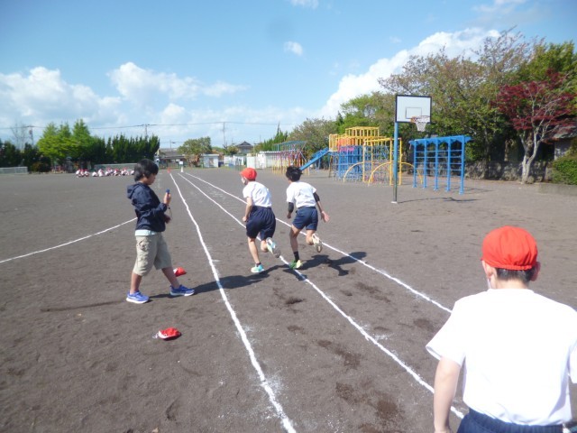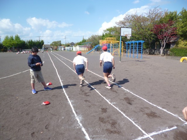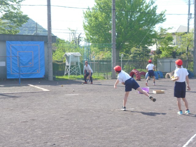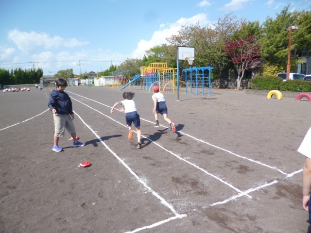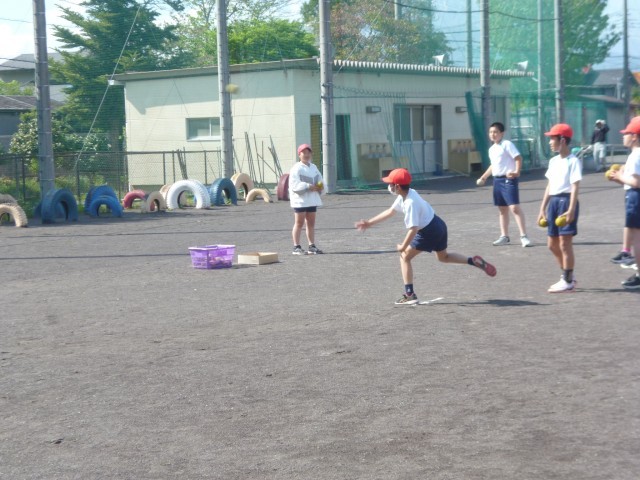 6年生体育の授業の様子です。6年生も50メートル走のタイムを計りました。さすが6年生ともなると、一人一人の走りに力強さを感じます。腕をよく振って、ももを高く上げて走ります。50メートル走の記録を計測した後は、ボール投げを行いました。体力アップコンテストの種目である「みんなで的当て」に挑戦しました。