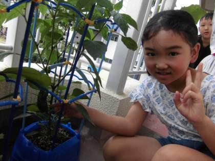ベランダで育てている野菜がすくすく育っています。