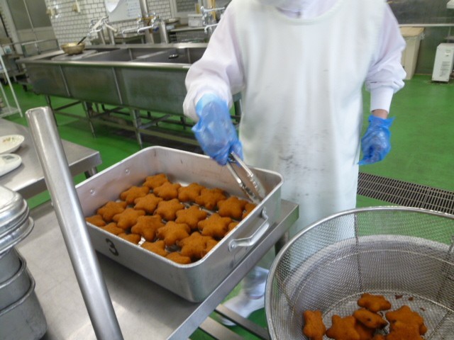 また、星型のコロッケは新鮮だったようで、大事に食べている子、『また給食に出して』という子もいました。