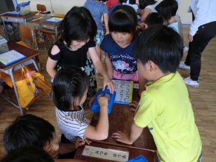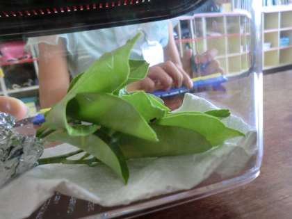 その後、それぞれの机に生き物を持ってきて、観察しました。