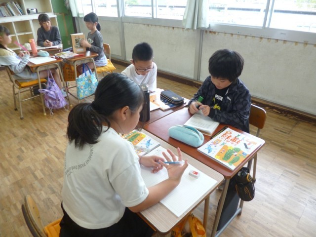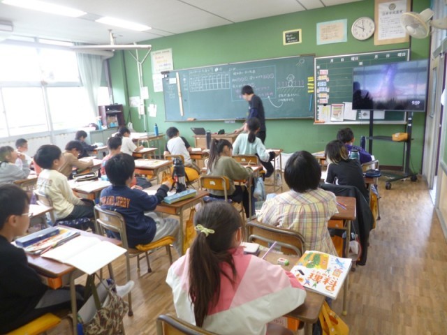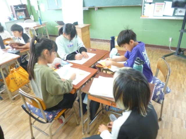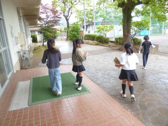 4年生理科「天気と気温」の授業の様子です。前回までに、晴れの日の1日の変化について、表やグラフをかいて気温の変化について学習をしてきました。今日の授業では、「雨の日の1日の気温の変化はどうだろう」ということで、ちょうど雨が降ってきたので調べることにしました。最初に班ごとに予想について話し合っていました。晴れの日の記録を参考にしながら予想を立てていました。