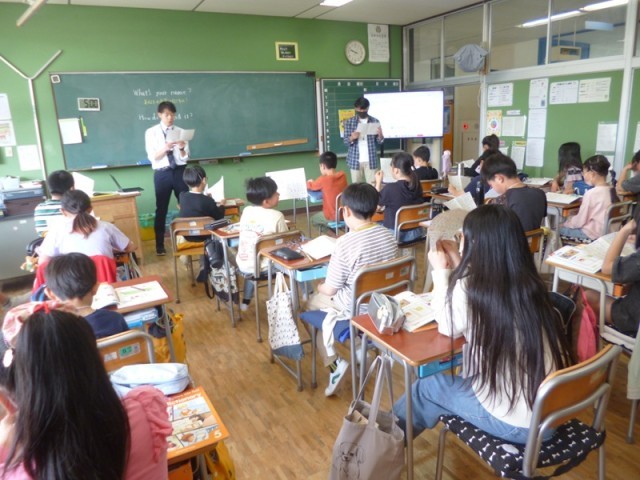 5年生英語の授業の様子です。ALTの先生と一緒にアルファベットのAからZまでの発音についての練習をしました。 その後、アクティビティを行い、お互いの名前の自己紹介と名前に使われているアルファベットについて紹介し合いました。友達と積極的に関わっていました。
