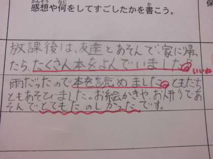 お休みの日はおじいちゃんおばあちゃんやパパとしたことを書いてくれる子も増えます。家族との時間がうかがえて、温かい気持ちになります。