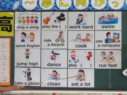 新しい表現が増えてきました。英語の授業以外でも、英語を話す機会を増やしていこうと思います。当番の子が指した言葉を、みんなでリピートしました。