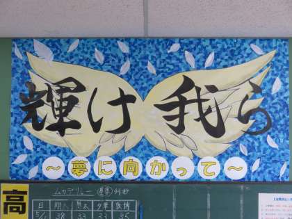 4月に決めた学級目標「輝け我ら 〜夢に向かって〜」の掲示が、先週完成しました。運動会で忙しかった5月、いろいろな時間の隙間を見付けて、こつこつ作業を進めていました。