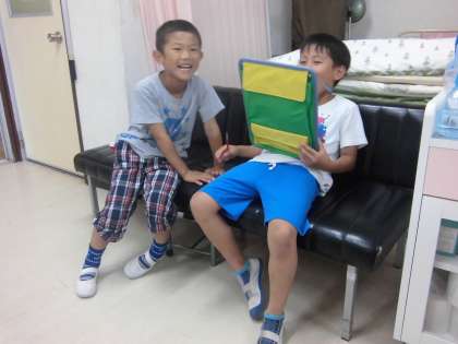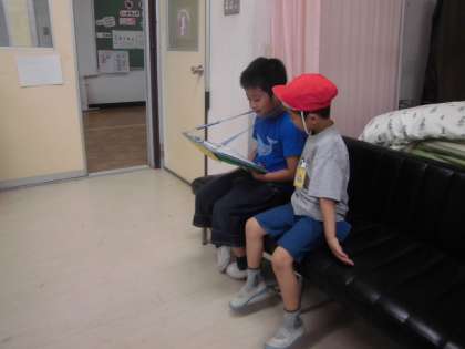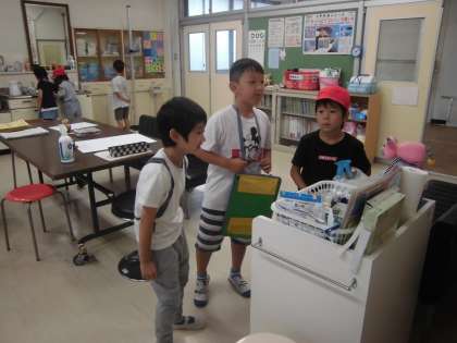 2年生が1年生を案内して、色々な教室を教えてあげています。