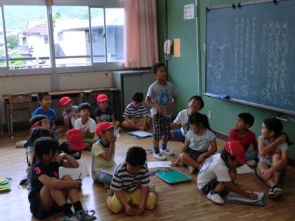 1年生は、この間勉強した「おもいやり」の気持ちを大切にして、1時間2年生と仲良く回ろうという話をしてから始めました。2年生の感想で、「1年生がちゃんと話を聞いてくれてうれしかった。」「にこにこしてついてきてくれたから、楽しかった。」というものがたくさん出されました。きっと、がんばれたのだろうと思います。