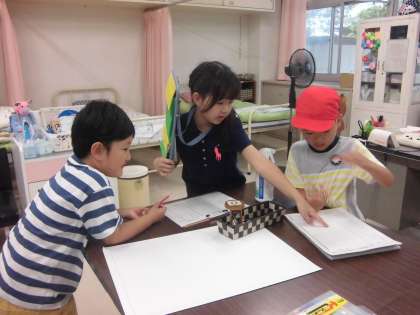 2年生は、1年生と手をつないであげたり丁寧に説明してあげたり、とても頼もしいです。