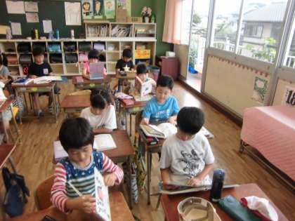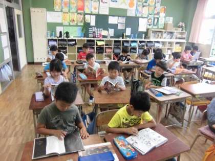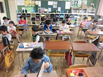 2年1組は、朝の時間に読書に取り組んでいます♩