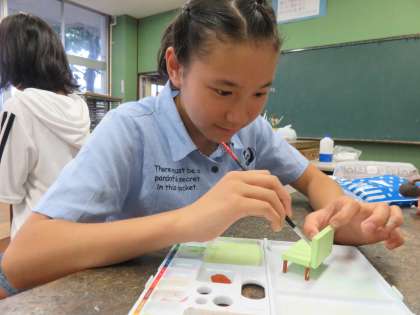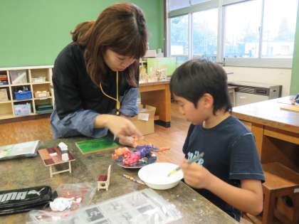 「12年後のわたし」の制作の続きです。今日は、ニス塗りや小物作りをしていました。いよいよ完成が近づいてきました。