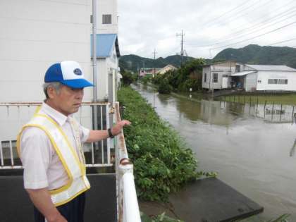 雨が小降りになったので、一番高い水かさのときより、30センチ下がったそうです。