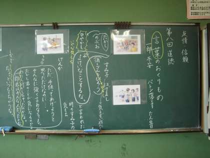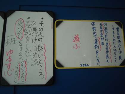 今日の道徳では、友情・信頼について考えました。男女関係なく仲よく生活していくために大切なことを考えました。