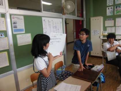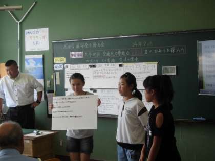 ・今日の「交通安全を語る会」のことを下級生に教える。