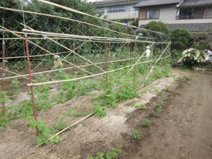 朝、地域の方が貸してくださっている畑に、3年生が水をやりにいきます。