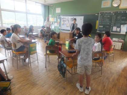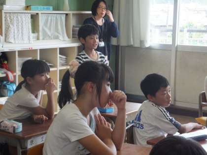 子どもたちは、三島さんのお話を真剣に聞き、教室が緊張感に包まれました。
