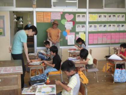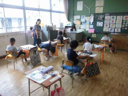 1年生の3時間目は、図工「ふるーつ、べじたぶる、りーすをつくろう!」です。