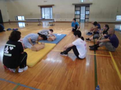 救命処置の流れ、心肺蘇生の手順及び手技を、実際に行います。