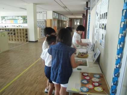 職員室前に子どもたちが夏休みに取り組んだ研究や作品が展示されています!