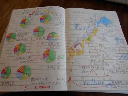 ふり返りでは、「日本海側と太平洋側では気候が違うことが分かりました。」「雨が少ない高地のところは、外で遊べるから住んでみたいな。」「北海道で、さらさらした雪で遊んでみたいです。」と子どもらしい感想がありました。ノートもきれいにまとめることができました。暑さの中、みんな頑張っています。新しいデジカメも好調です。