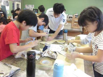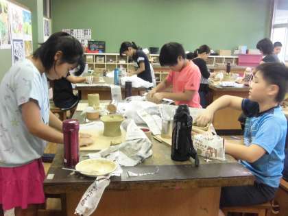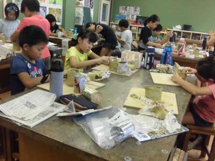 自分達で作った素焼きの土器に,種まきをしたフラワーポットを入れ,一人一鉢,学校を飾ります。