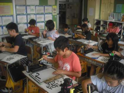 点画のつながりを意識して、一画一画とても集中して取り組んでいます。無駄なおしゃべりは全くありません。