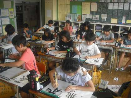 点画のつながりを意識して、一画一画とても集中して取り組んでいます。無駄なおしゃべりは全くありません。