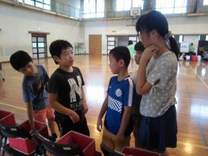 子どもたちは、考えながら、それぞれのゴミ箱に入れていきます♬