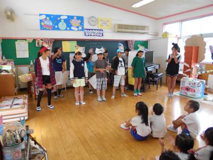 今日の20分休み、保健体育委員会は幼稚園へ行きました。