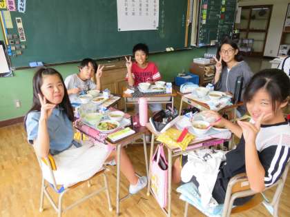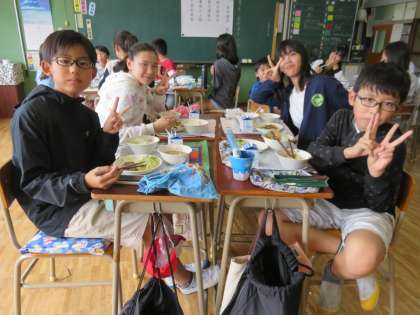 今日の給食から、修学旅行の班で食べるようにしました。修学旅行では、班での行動が多くなります。