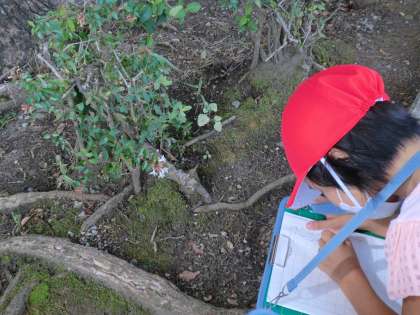 生きものや、植物、学校で発見して知らせたいことを見付けに行きました。
