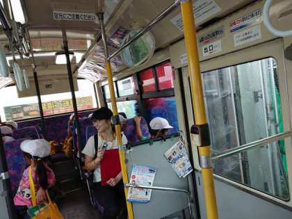 「次は、大平車庫」のアナウンスに、子どもたちは、先を争って、ボタンを押します!