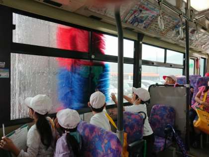 バスの中から、バスが洗車機できれいにされすのを見ます!