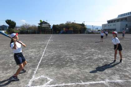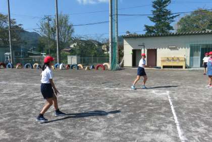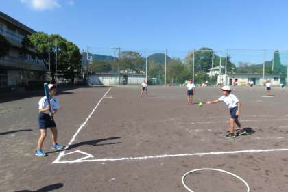 「ソフトボール」の学習です。気持ちの良い秋晴れの下、楽しそうに動いていました。