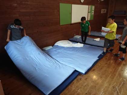 シーツを受け取り、各部屋で布団を敷きます!