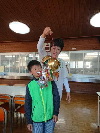 今日が誕生日のお友達をくす玉で、お祝いです!