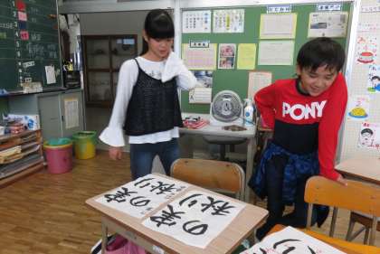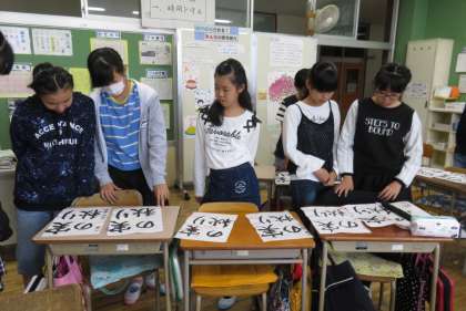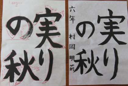 今日の清書と、一番最初に書いた自分の字と見比べたり、友達の上達ぶりを見合ったりしました。