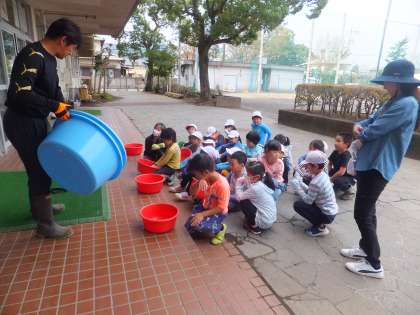 3年生の子どもたちは、みんなはりきって外に出ました。