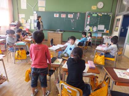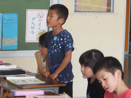 1年生では、たくさんの子が手を上げ、しっかり自分の意見を言っていました。