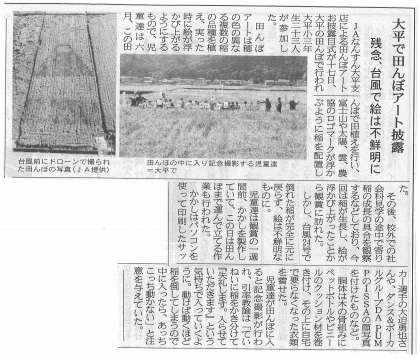 3年生がJA南駿大平支店のご協力により取り組んでいる「田んぼアート」お披露目式の記事が、本日10月25日、沼津朝日に掲載されました。