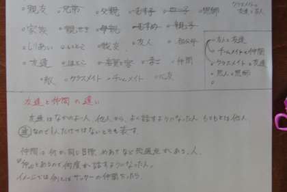 今日の道徳は、「友達」と「仲間」の違いを考えました。