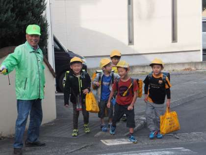 ポケットに手を入れながら歩く子どもたちに、「手を出そうね。」と、見守りボランティアの方が優しく声をかけてくださいます。