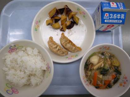 ご飯 牛乳 八宝菜 揚げ餃子 大学芋