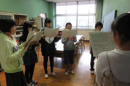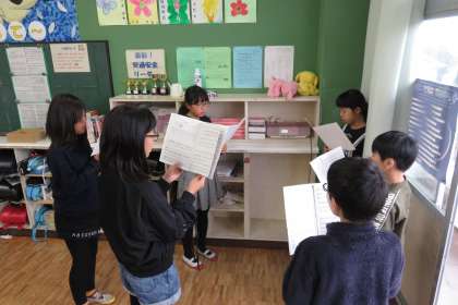 パートに分かれて合唱の練習をしています。日に日に成長が分かるので、聞いていてとても嬉しくなります。