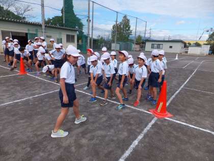 先生がいなくても、2年生は、集まった子から準備運動をしていました。