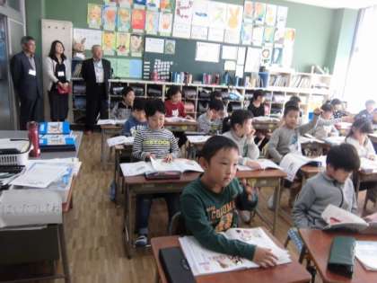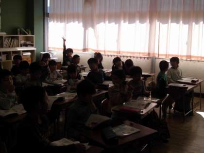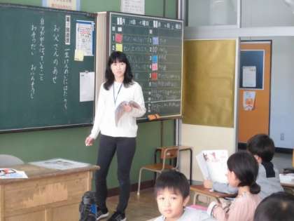 2年1組の4時間目は道徳です。学校評議員の皆様が参観します。