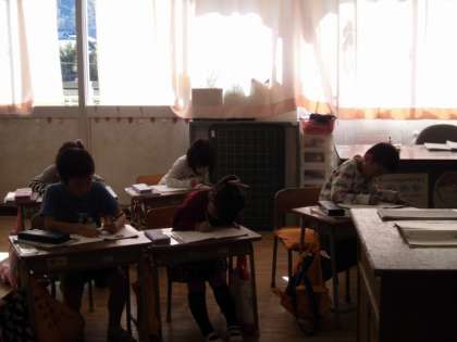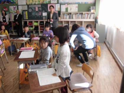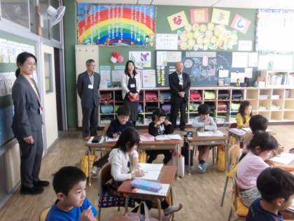 1年1組の4時間目は算数です。学校評議員の皆様が参観します。