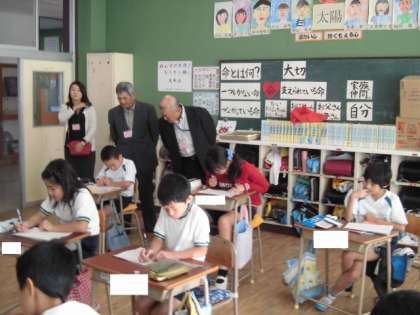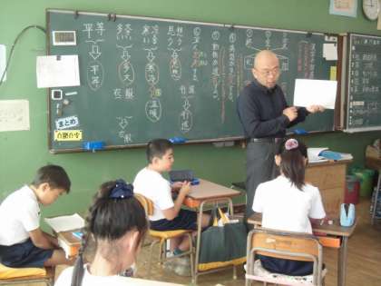 4年1組の4時間目は国語です。学校評議員の皆様が参観します。